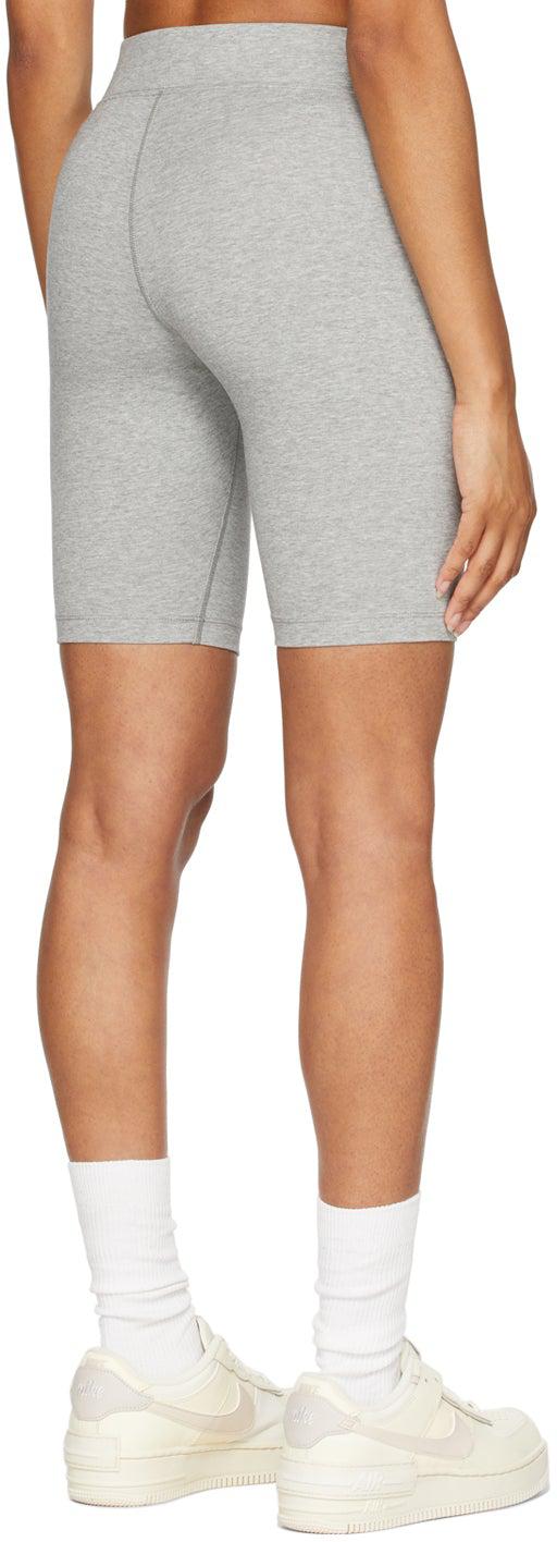Stretch cotton jersey shorts in grey. High-rise. Elasticized waistband. Swoosh embroidered in white at front leg. Supplier color: Dark heather grey/White 61% cotton, 33% polyester, 6% spandex. Brand: Nike