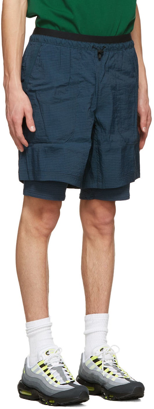 Nylon ripstop shorts in navy. Mid-rise. Four-pocket styling. Tonal webbing trim throughout. Bungee-style drawstring and trim in black at elasticized waistband. Tonal stretch knit cotton-blend underlay. Stretch cotton-blend jersey lining. Supplier color: Ozone Body: 100% nylon. Lining 1: 62% cotton, 33% polyester, 5% spandex. Lining 2: 50% polyester, 44% cotton, 6% spandex. Brand: Nike