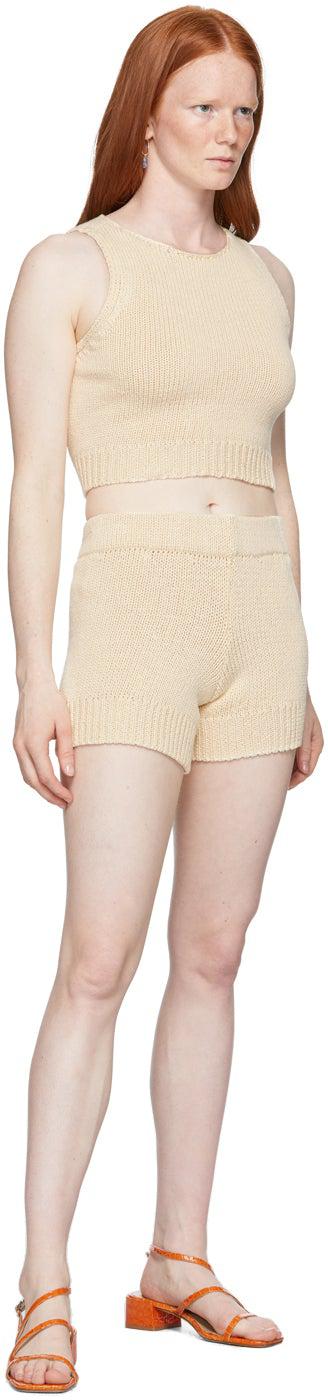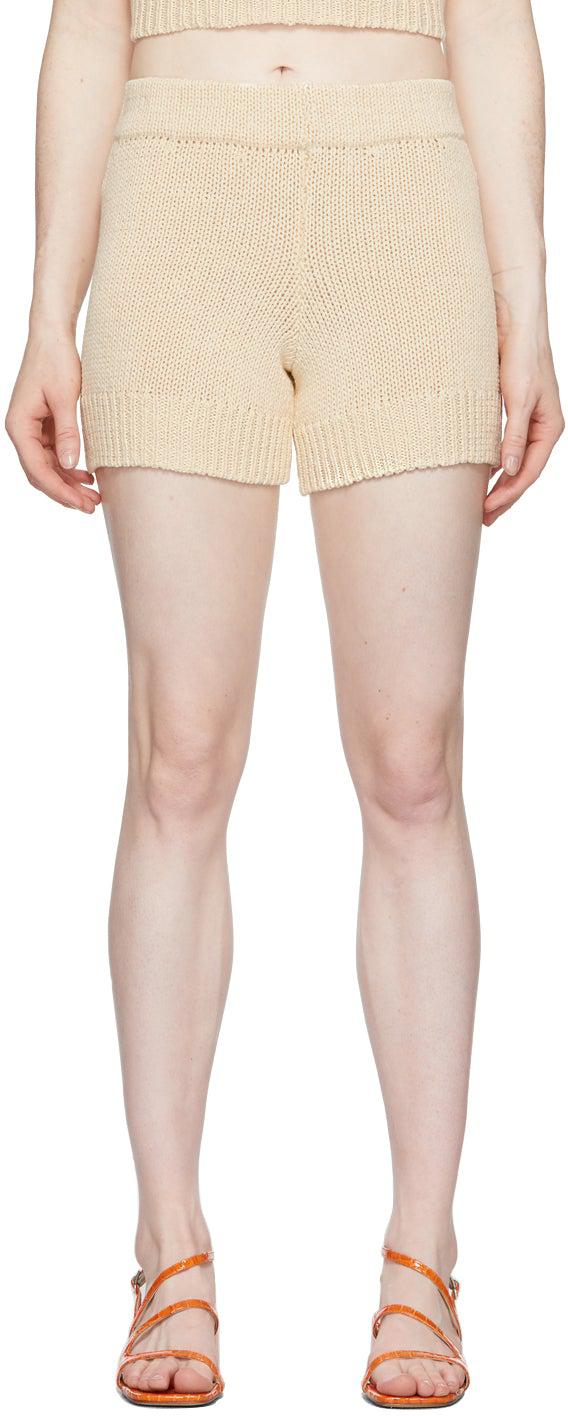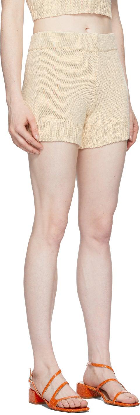 Knit organic cotton shorts in off-white. High-rise. Elasticized waistband. Rib knit cuffs. Supplier color: Ecru 100% organic cotton. Brand: Paloma Wool