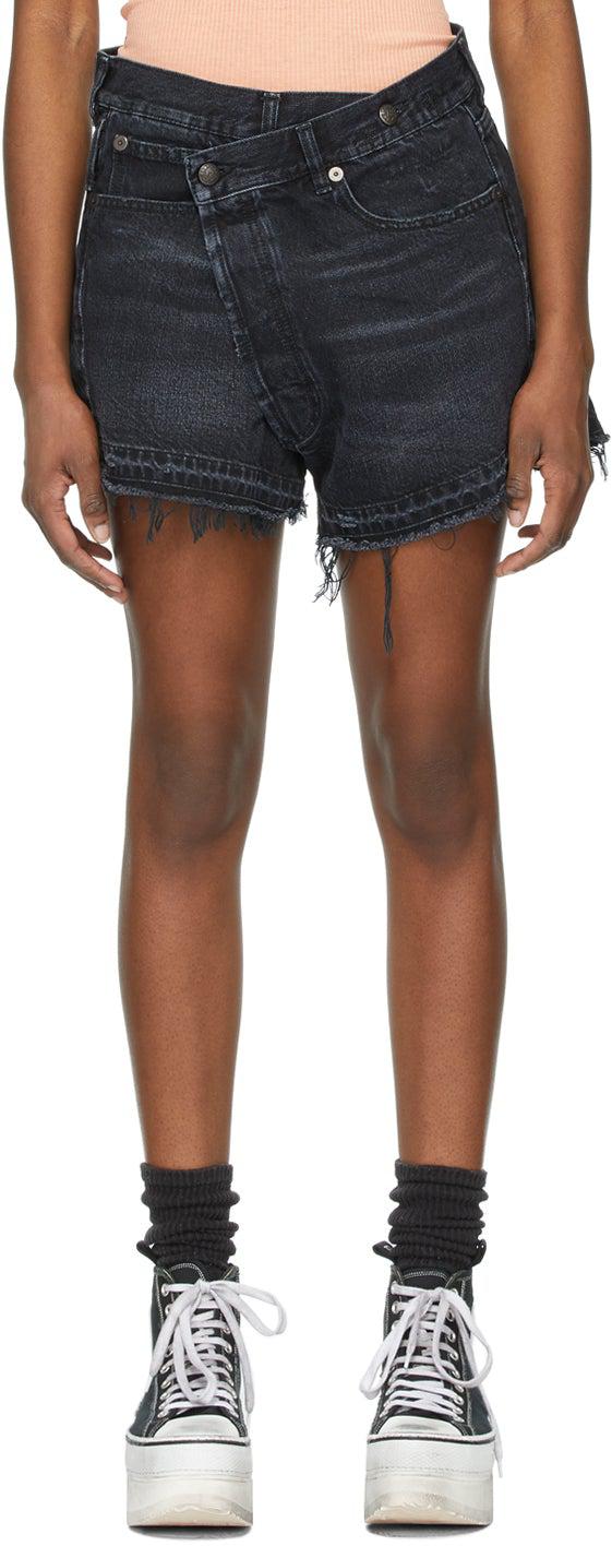 R13 Black Crossover Denim Shorts - Short de denim croisé noir R13 - R13 블랙 크로스 오버 데님 반바지