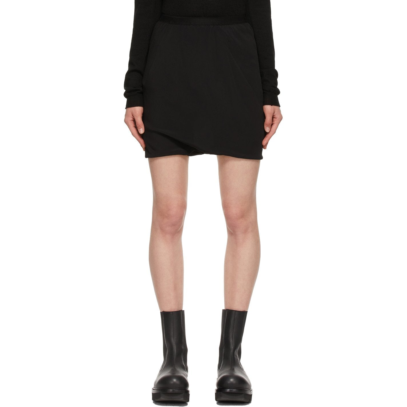 Silk-blend crepe shorts in black. Mid-rise. Dropped inseam. Two-pocket styling. Rib knit waistband. Full viscose satin lining. Supplier color: Black Body: 62% acetate, 38% silk. Lining: 100% viscose. Brand: Rick Owens