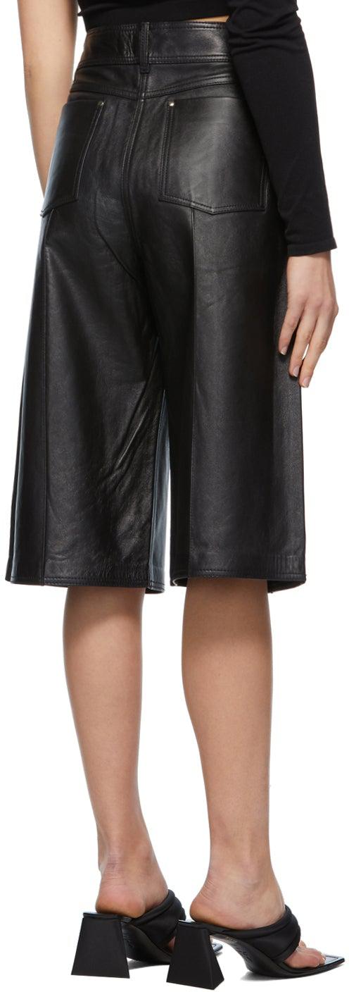 Grained lambskin shorts in black. High-rise. Five-pocket styling. Belt loops at waistband. Central pinched seams at front and back. Zip-fly. Silver-tone hardware. Supplier color: Black 100% lambskin. Brand: Stand Studio