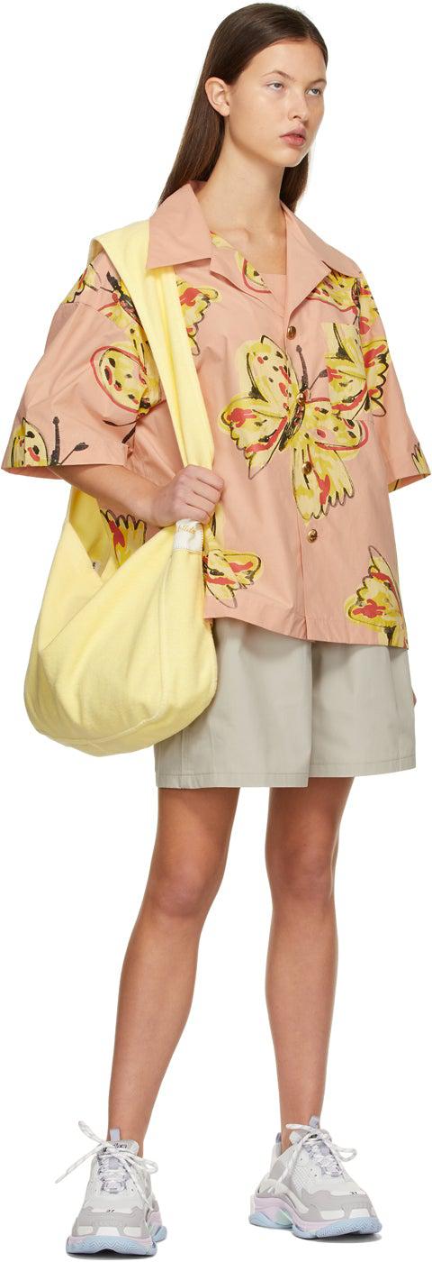 Plain-woven cotton-blend shorts in beige. Mid-rise. Three-pocket styling. Elasticized waistband. Textile logo patch in black and gold-tone at front leg. Full satin lining. Supplier color: Beige Body: 65% polyester, 35% cotton. Lining: 100% rayon. Brand: We11done