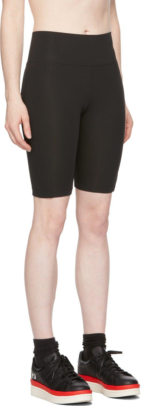 Stretch nylon jersey shorts in black. High-rise. Elasticized waistband. Zippered pocket at back waistband. Tonal logo bonded at back leg. Supplier color: Black/White 75% nylon, 25% elastane. Brand: Y-3