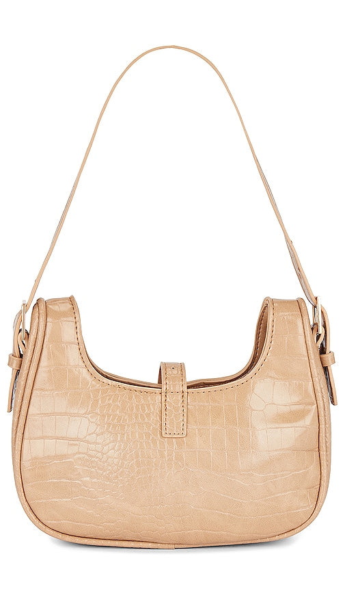 8 Other Reasons Shoulder Bag in Tan. 8 Other Reasons Shoulder Bag in Tan. Croc embossed faux leather exterior with twill lining. Made in China. Top zipper and top strap with magnetic button closure and gold-tone buckle detailing. One main compartment. Interior zipper pocket. Adjustable shoulder strap. Measures approx 9.25 W x 5 H x 2.25 D Shoulder strap with a 10.25 drop. 8OTH-WY72. 8ORSS31. 8 Other Reasons, helmed by designer Charles Lichaa, is an original Australian accessories line, which launched in 2010. Over the years, the brand has developed a dedicated following, wowing both local and international fashion stylists and bloggers alike. Diversity in design, quality and affordability are what make the line so loved and craved. The 8 Other Reasons girl is unapologetically sexy showcasing a beautiful intensity and a perfectly undone look. She's the stone cold fox in boots, the life of the party and the girl with the great accessories. Shop the latest in fashion from 8 Other Reasons