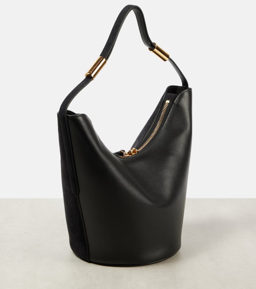 Material: leather. Lining: leather. Made in Italy. Designer color name: Noir. Includes: dust bag. Closure: zipped top. Top handle. Hardware color: gold. Shop the latest Alaia Shoulder Bags for women now.