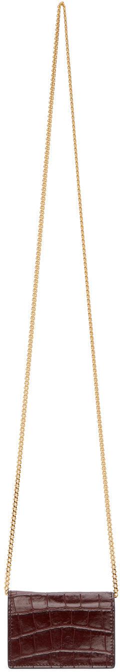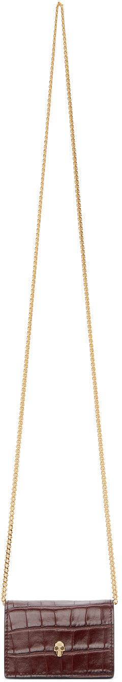 Alexander McQueen Burgundy Croc Skull Card Holder Bag