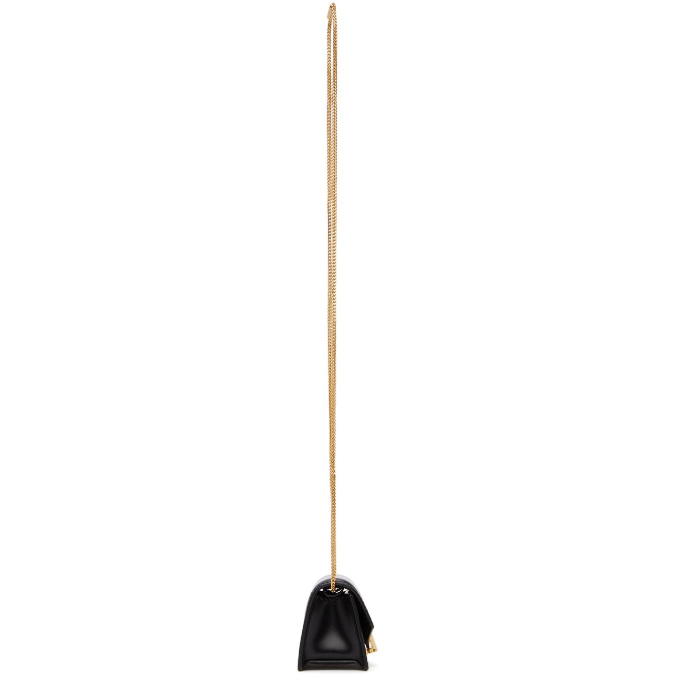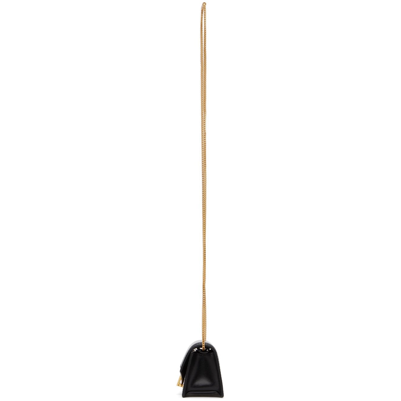 Buffed calfskin shoulder bag in black. Detachable sliding box chain shoulder strap with screw fastening. Logo hardware at face. Embossed logo at back face. Foldover flap with flip-clasp fastening. Two card slots and logo printed in white at interior. Unlined. Gold-tone hardware. Approx. 4.75 length x 3 height x 2.25 width. Supplier color: Black Calfskin. Brand: Alexander Wang