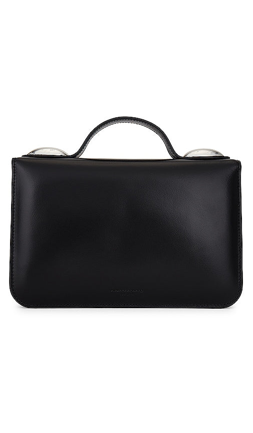 Alexander Wang Dome Structured Pochette in Black. Alexander Wang Dome Structured Pochette in Black. Leather exterior with canvas lining. Made in China. Flap top with silver-tone dome clasp closure. Two compartments. Interior zipper pocket and leather card slot. Top handle with silver-tone dome hardware. Detachable silver-tone chain link strap. Measures approx 8.75 W x 5.5 H x 2.25 D Shoulder strap with a 19 drop Top handle with a 1.75 drop. AWAR-WY97. 20423P01L. Alexander Wang adds measured depth to his signature tough-sexy pieces using a sultry scarlet and feminine blush alongside his favorite black and grey hues. Expect luxe hybrids of your favorite outerwear as well as layers, chunky knits, and sleek satins in this collection. Shop the latest in fashion from Alexander Wang