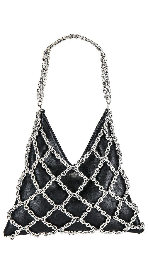 ANINE BING Mini Gaia Chain Bag in Black. ANINE BING Mini Gaia Chain Bag in Black. Leather exterior with silver-tone chain detailing and twill lining. Made in China. Top magnetic button closure. One main compartment. Tonal ANINE BING monogram at front. Dual silver-tone chain handle. Measures approx 9 W x 7.75 H x 0.75 D Top handle with a 7 drop. ANIN-WY38. A-13-1411-045. Inspired by Scandinavian simplicity and vintage Americana, Los Angeles based fashion house Anine Bing has created a global brand for the modern woman seeking a timeless yet rebellious approach to style. From luxurious staples to wardrobe basics, Anine Bing provides the highest quality fabrications and materials in each collection that effortlessly fuse together edgy feminine designs. Shop the latest in fashion from ANINE BING