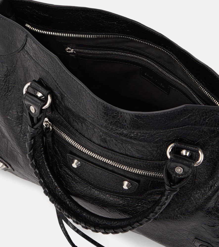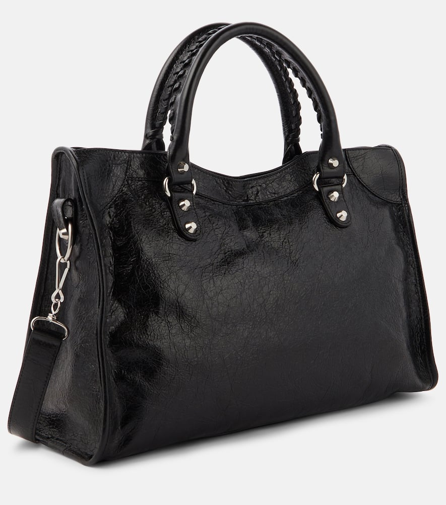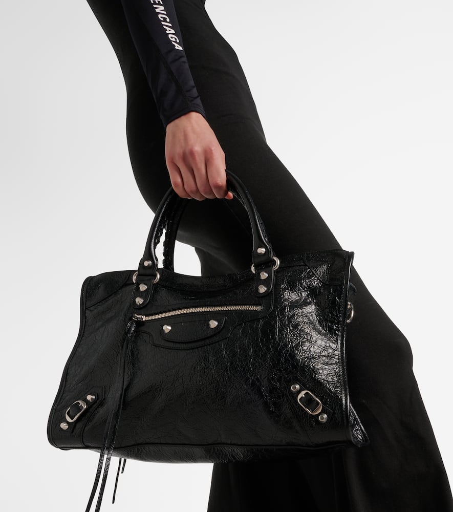 Material: lamb leather. Lining: cotton. Made in Italy. Designer color name: Black. Trim: lamb leather. Internal details: internal zipped pocket. Closure: zipped top. Top handles, Detachable shoulder strap. Color of fastening: silver. Includes: dust bag. Hardware color: silver. Shop the latest Balenciaga Shoulder Bags for women now.