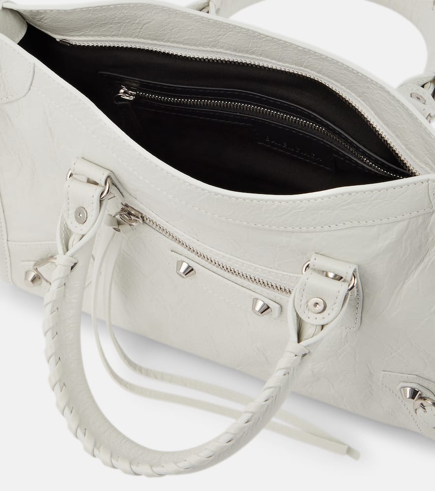 Material: lamb leather. Lining: cotton. Made in Italy. Designer color name: Optic White. Trim: lamb leather. Internal details: internal zipped pocket. Closure: zipped top. Top handles, Detachable shoulder strap. Color of fastening: silver. Includes: dust bag. Hardware color: silver. Shop the latest Balenciaga Shoulder Bags for women now.