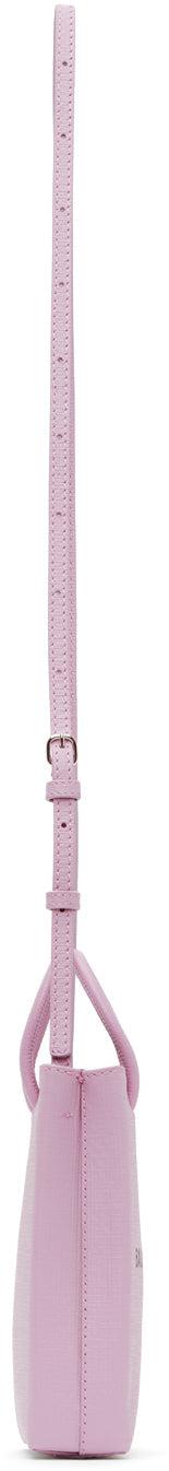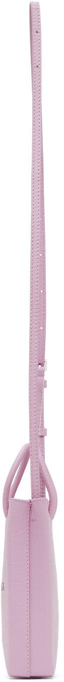Textured calfskin shoulder bag in purple. Twin rolled carry handles at top. Adjustable shoulder strap with pin-buckle fastening. Logo printed in black at face. Magnetic press-stud tab fastening at throat. Patch pocket at interior. Textile lining in black. Silver-tone hardware. Approx. 5 length x 7 height 2 width. Supplier color: Lilac tonal Calfskin. Brand: Balenciaga