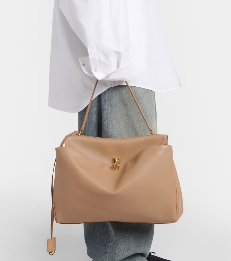 Material: leather. Lining: unlined. Made in Italy. Designer color name: Latte. Closure: turn-lock fastening. Internal details: internal zipped and slot pockets. Top handle. Includes: box, dust bag. Shop the latest Balenciaga Shoulder Bags for women now.