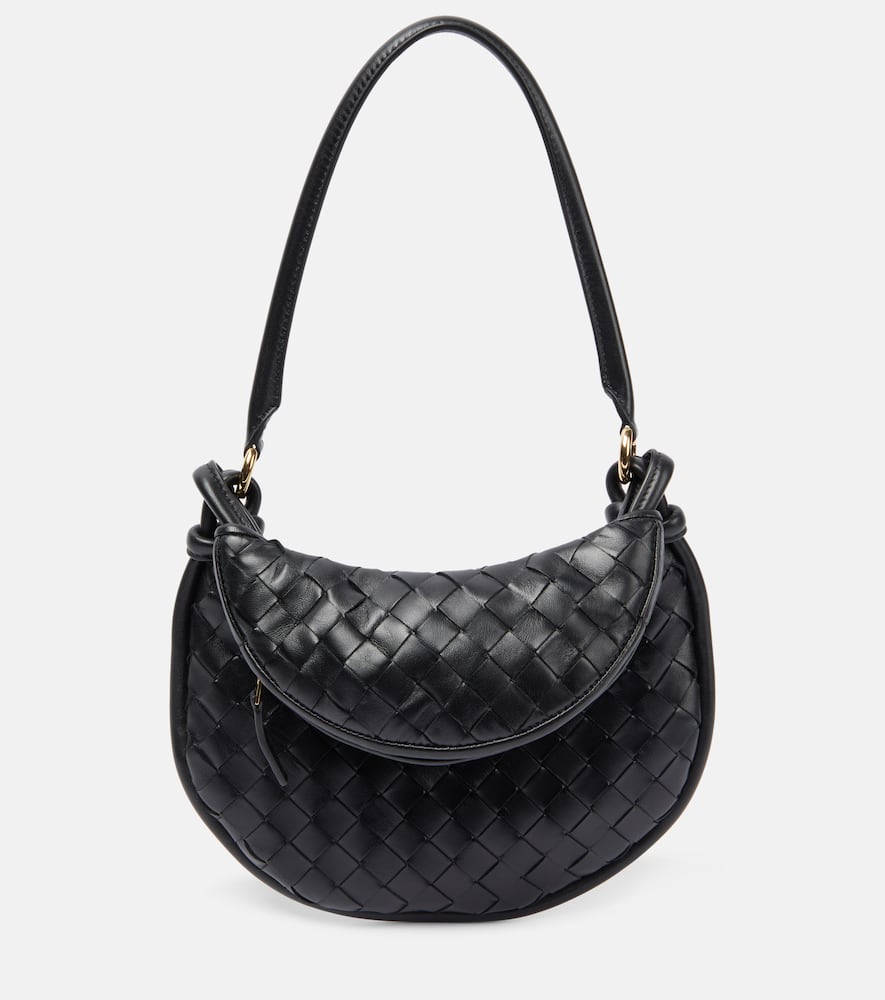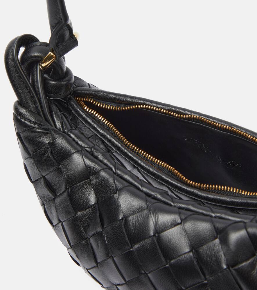 Material: leather. Lining: leather. Made in Italy. Designer color name: Black-M Brass. Closure: zipped top. Leather shoulder strap. Zipped front pocket. Comes with dust bag. Shop the latest Bottega Veneta Shoulder Bags for women now.
