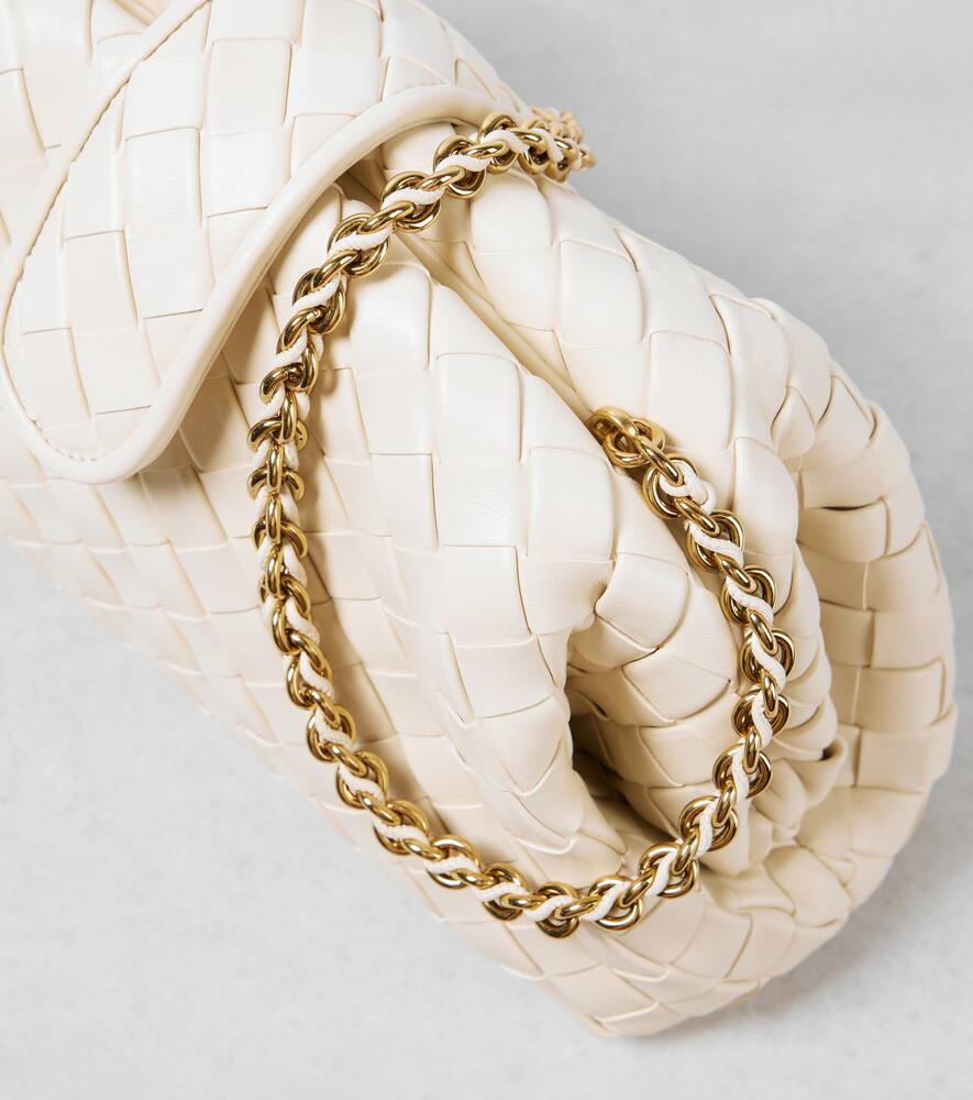 Material: calf leather. Lining: leather. Made in Italy. Designer color name: String-M Brass. Closure: magnetic-tab fastening. Chain and leather shoulder strap. Includes: dust bag. Shop the latest Bottega Veneta Shoulder Bags for women now.
