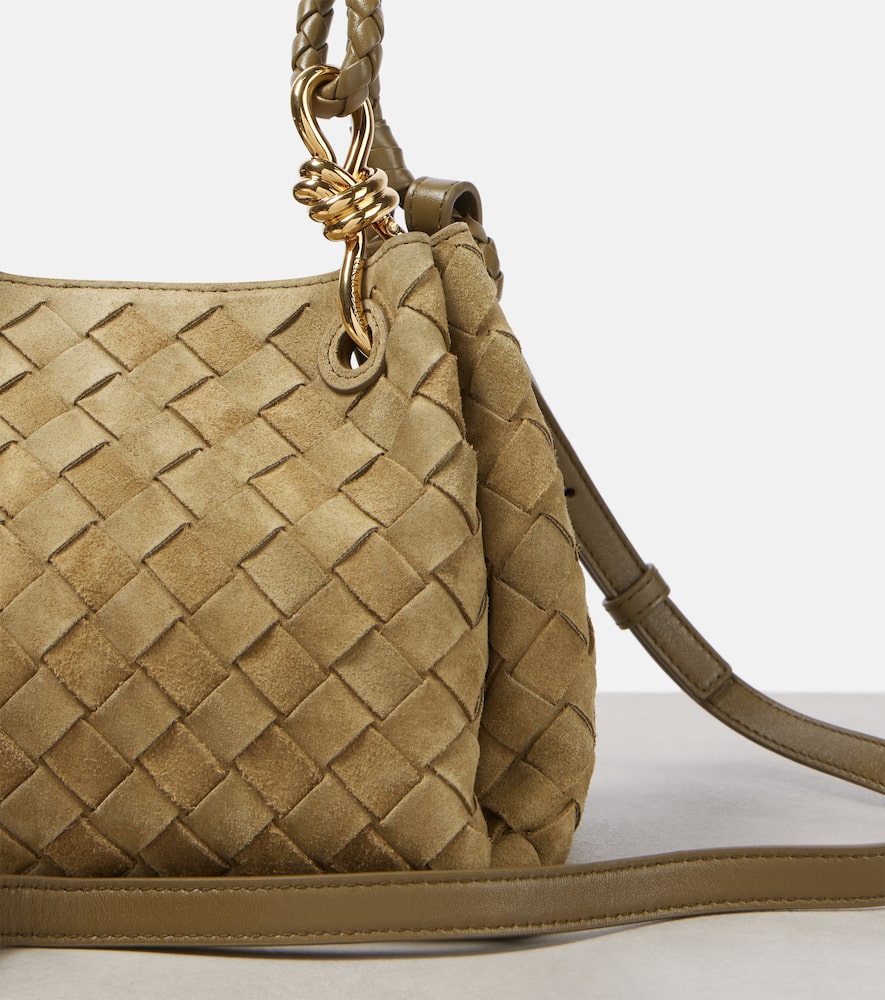 Bottega Veneta Parachute Small suede shoulder bag. Shop Bottega Veneta Shoulder Bags for women now.