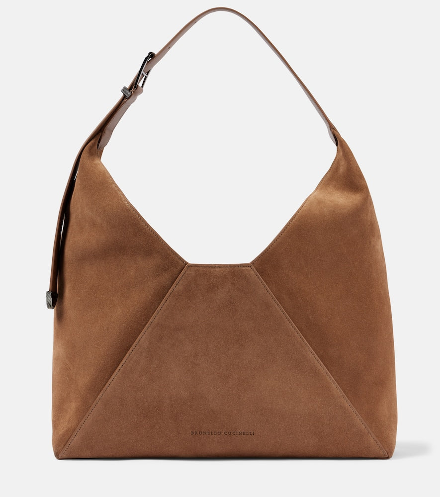 Brunello Cucinelli Large paneled suede shoulder bag. Shop Brunello Cucinelli Shoulder Bags for women now.