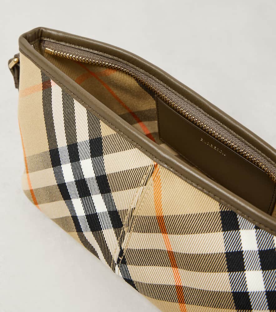 Material: fabric. Lining: fabric. Made in Italy. Designer color name: Sand. Closure: zipped top. Shoulder strap. Trim: leather. Shop the latest Burberry Shoulder Bags for women now.