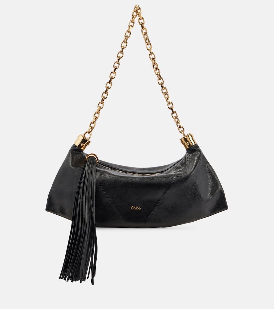 Material: leather. Lining: suede. Made in Italy. Designer color name: Black. Internal details: card slot. Closure: zipped top. Hardware color: gold. Color of fastening: gold. Chain shoulder strap. Color of chain strap: gold. Includes: dust bag. Shop the latest Chloe Shoulder Bags for women now.