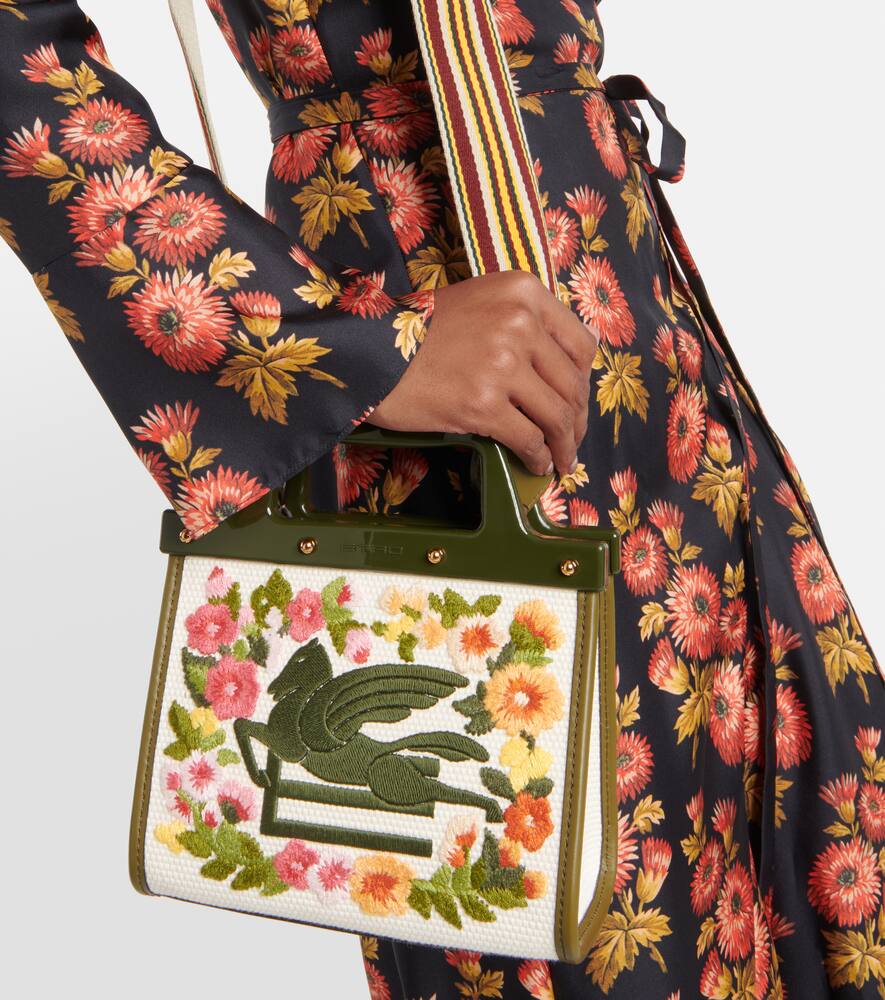Detachable shoulder strap, Top handles. Internal details: internal zipped pocket, fabric lining. Designer color name: Multicolor. Made in Italy. Protective feet. Trim: plastic, leather. Closure: open top. Comes with dust bag. Material: fabric. Comes with a box. Shop the latest Etro Shoulder Bags for women now.