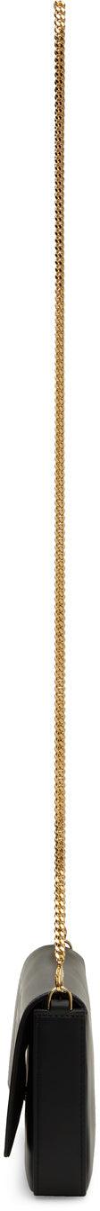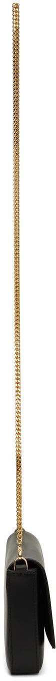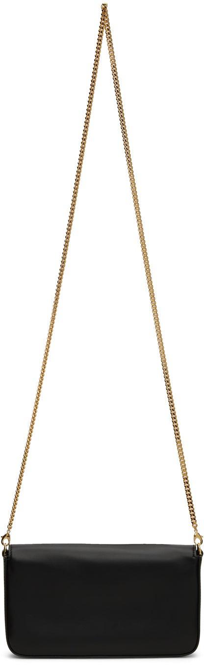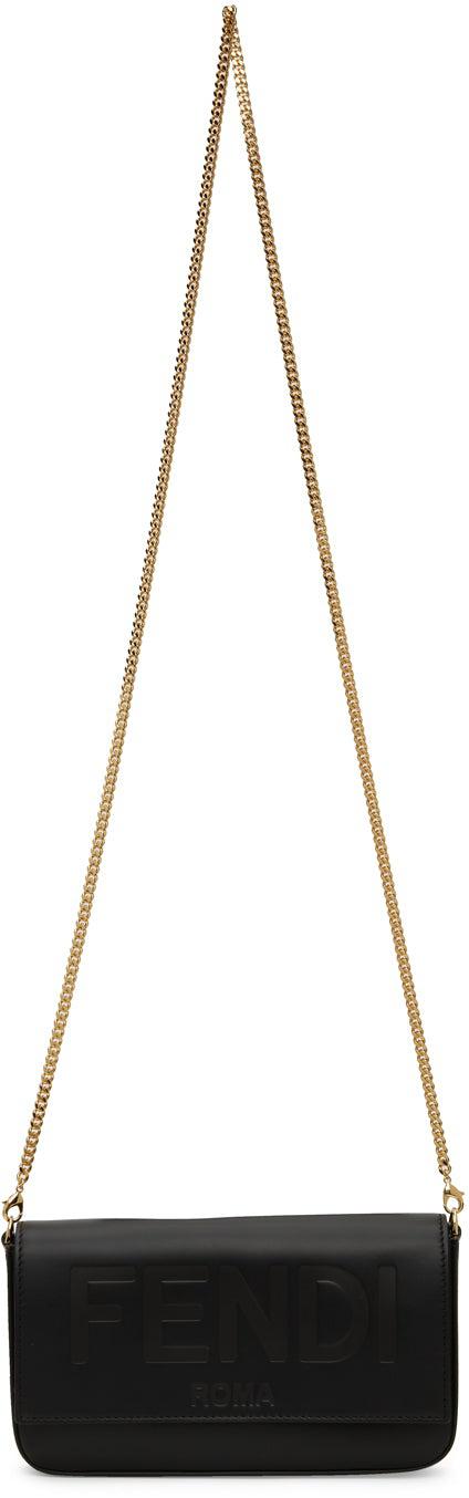 Buffed leather shoulder bag in black. Detachable curb chain shoulder strap featuring lanyard clasp fastening. Logo embossed at face. Foldover flap with press-stud fastening. Removable buffed leather zippered pouch and card holder featuring eight card slots and one note slot at interior. Patch pocket at interior. Twill lining. Gold-tone hardware. Approx. 8.5 length x 5.5 height x 1.5 width. Supplier color: Black Calfskin. Brand: Fendi