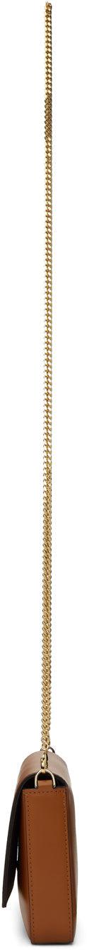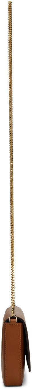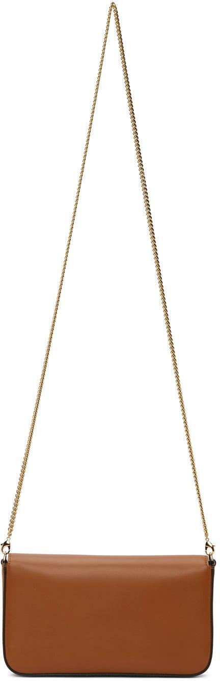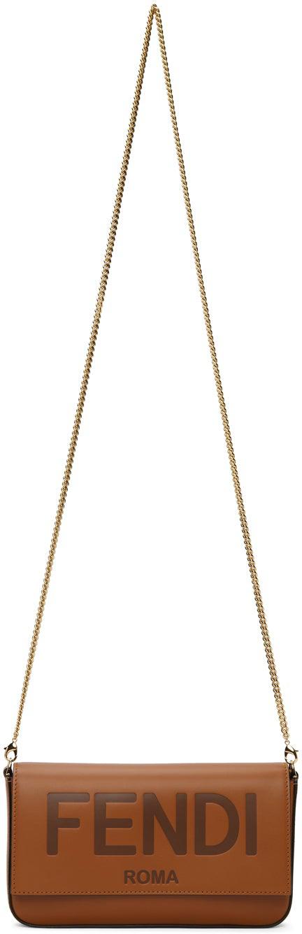 Buffed calfskin shoulder bag in brown. Detachable curb chain shoulder strap with lobster-clasp fastening. Logo embossed at face. Foldover flap with press-stud fastening. Removable buffed leather card holder with eight card slots one note slot and removable buffed leather coin pouch at interior. Patch pocket at interior. Textile lining in black. Gold-tone hardware. Approx. 8.5 length x 5 height x 1.5 width. Supplier color: Brown Calfskin. Brand: Fendi