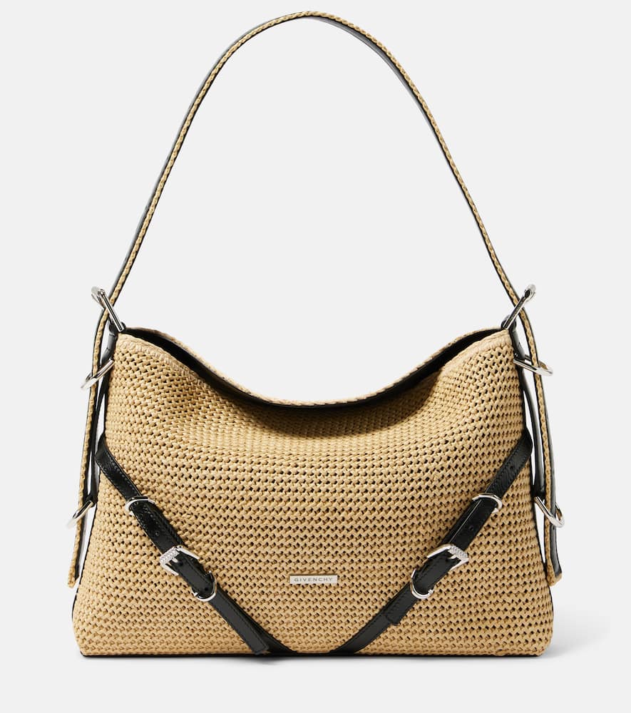 Material: raffia. Lining: fabric. Made in Italy. Designer color name: 101-Natural. Trim: leather. Internal details: internal zipped pocket. Closure: open top. Detachable, adjustable shoulder strap. Includes: dust bag. Shop the latest Givenchy Shoulder Bags for women now.