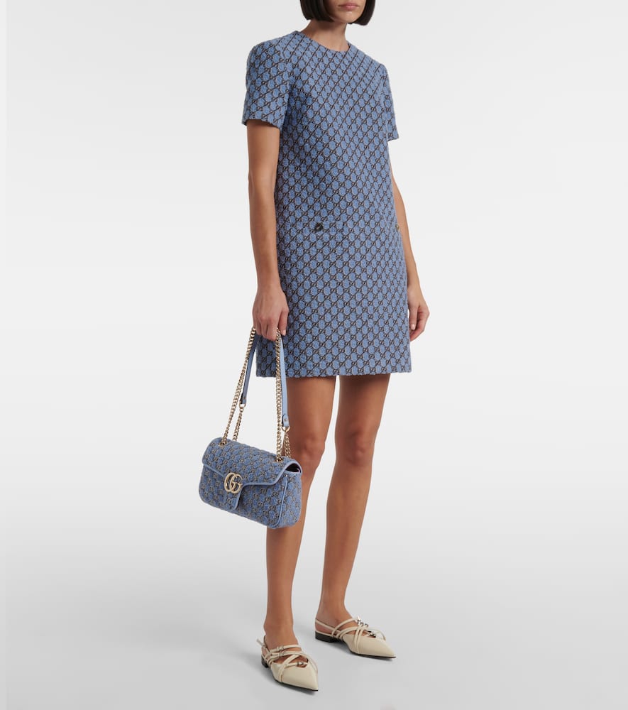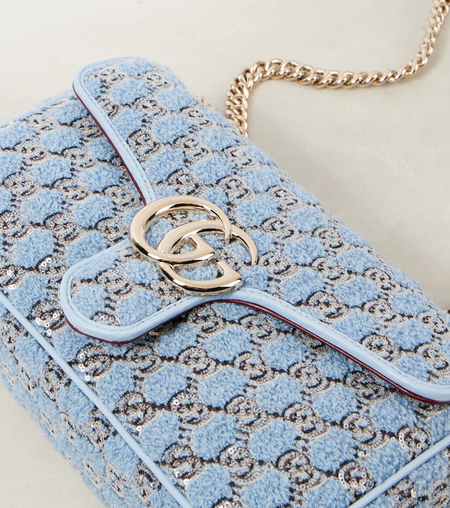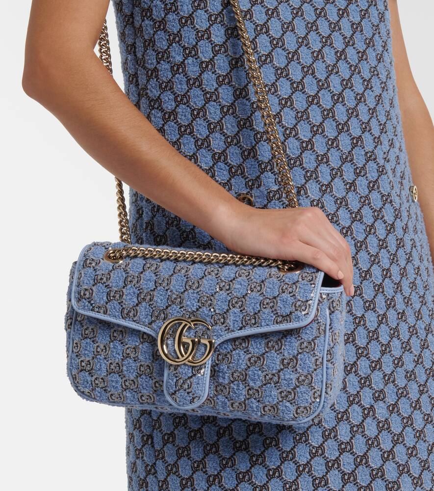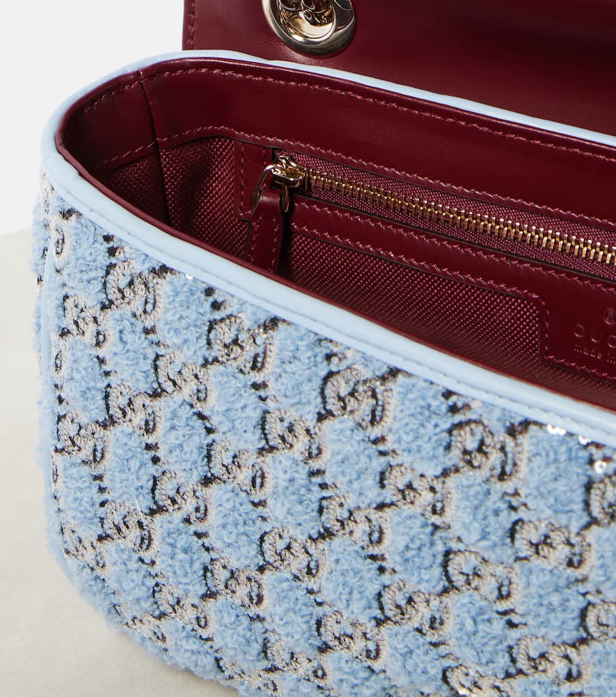 Material: fabric. Lining: fabric. Made in Italy. Designer color name: Azure Black Mc/Sky. Includes: dust bag. Closure: snap-clasp fastening. Chain shoulder strap. Internal details: internal zipped pocket. Shop the latest Gucci Shoulder Bags for women now.