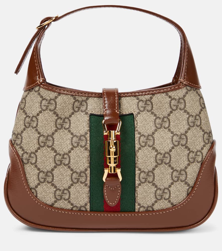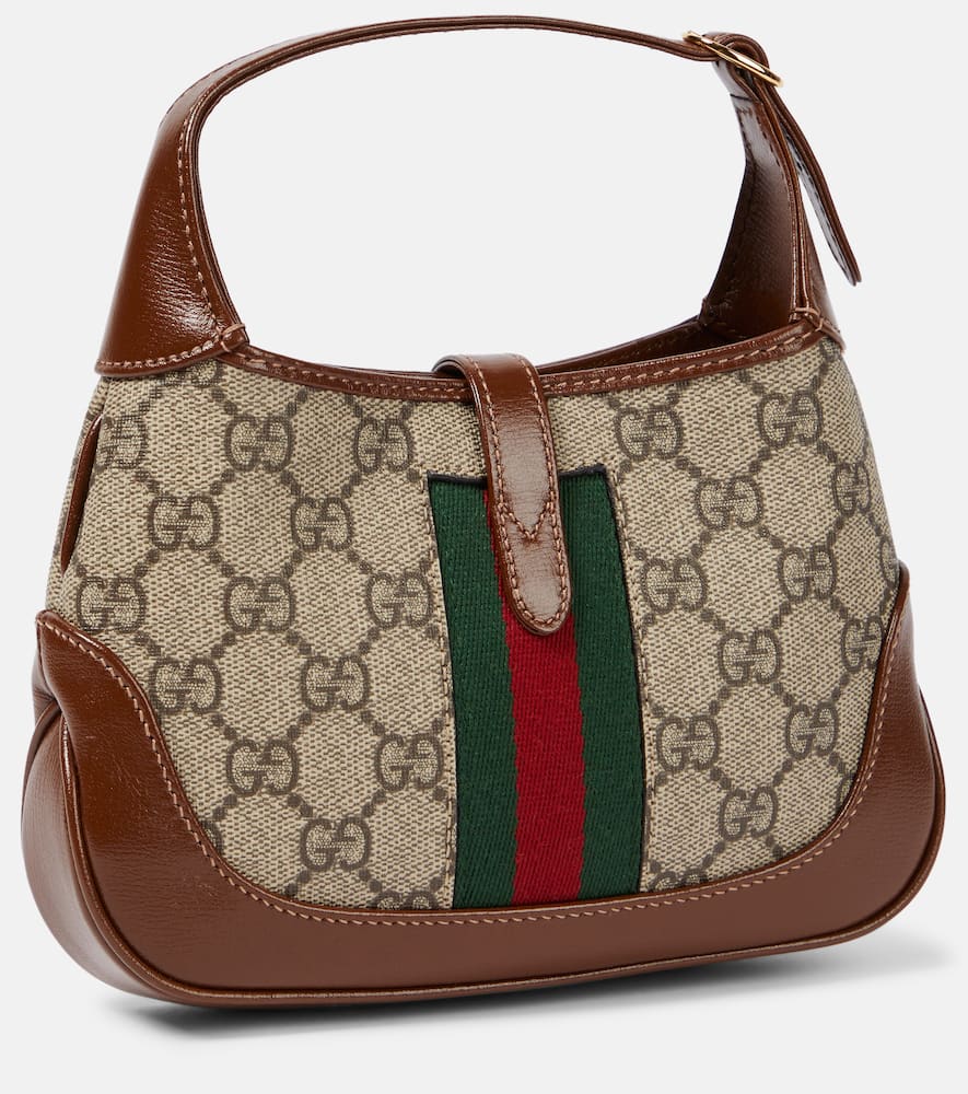 Material: fabric. Lining: fabric. Made in Italy. Designer color name: Be.Ebon/Br.Sugar/Vrv. Trim: leather. Top handle, Adjustable shoulder strap. Closure: push-clasp fastening. Internal details: internal slot pocket. Comes with dust bag. Shop the latest Gucci Shoulder Bags for women now.