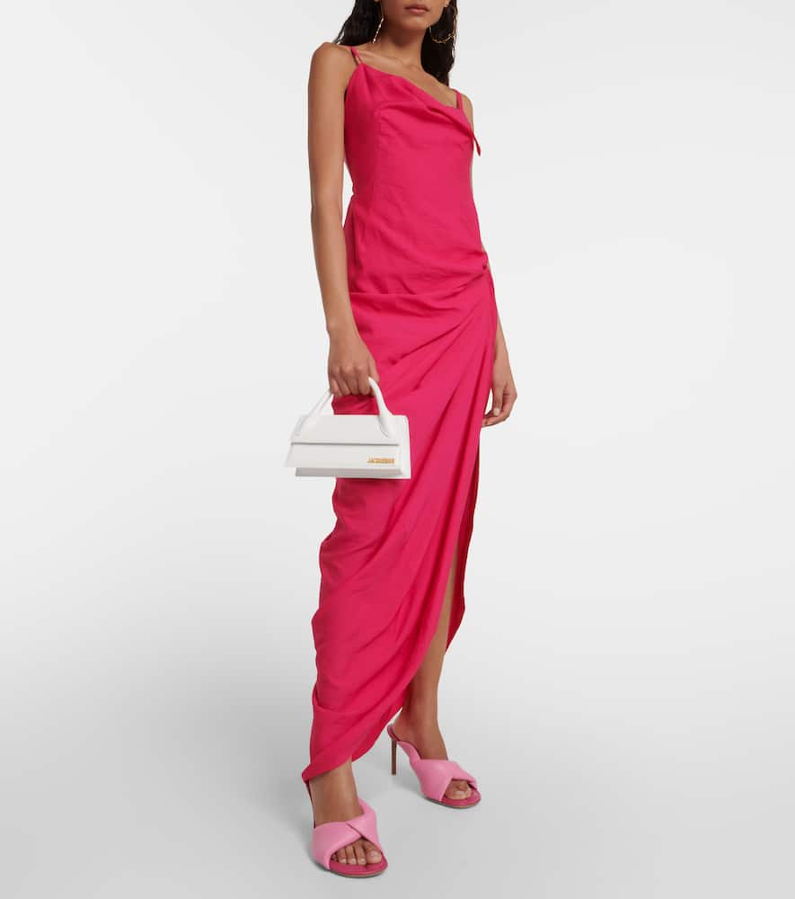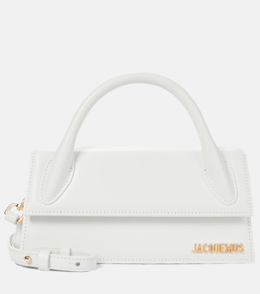 Material: leather. Lining: fabric. Made in Spain. Designer color name: White. Top handle, Detachable, adjustable shoulder strap. Color of fastening: gold. Internal details: card slot. Hardware color: gold. Includes: dust bag. Closure: snap-buttoned fastening. Shop the latest Jacquemus Shoulder Bags for women now.