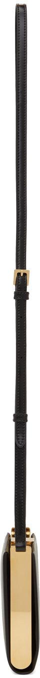 Structured buffed calfskin shoulder bag in black. Gold-tone metal trim throughout. Adjustable shoulder strap with pin-buckle fastening. Gold-tone logo stamp at face. Flip-clasp fastening. Accordion panels, patch pocket, and logo embossed at interior. Tonal calfskin lining. Gold-tone hardware. Approx. 4.5 length x 5 height x 1 width. Supplier color: Black Calfskin, metal. Brand: Jil Sander