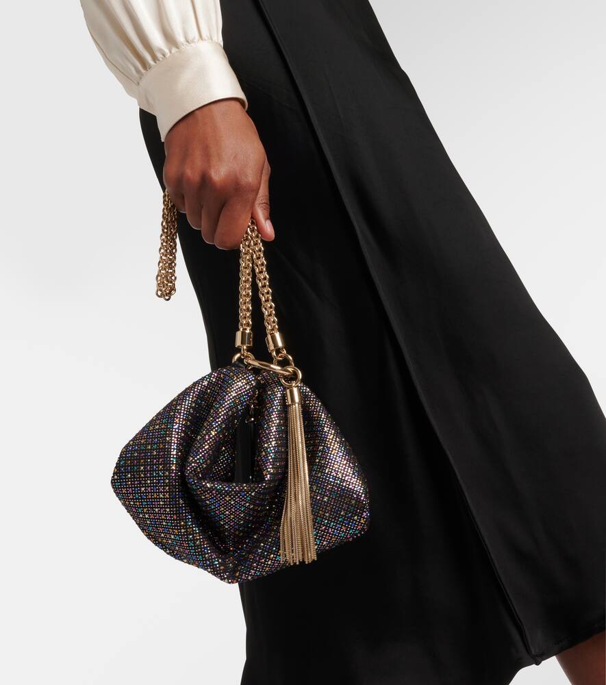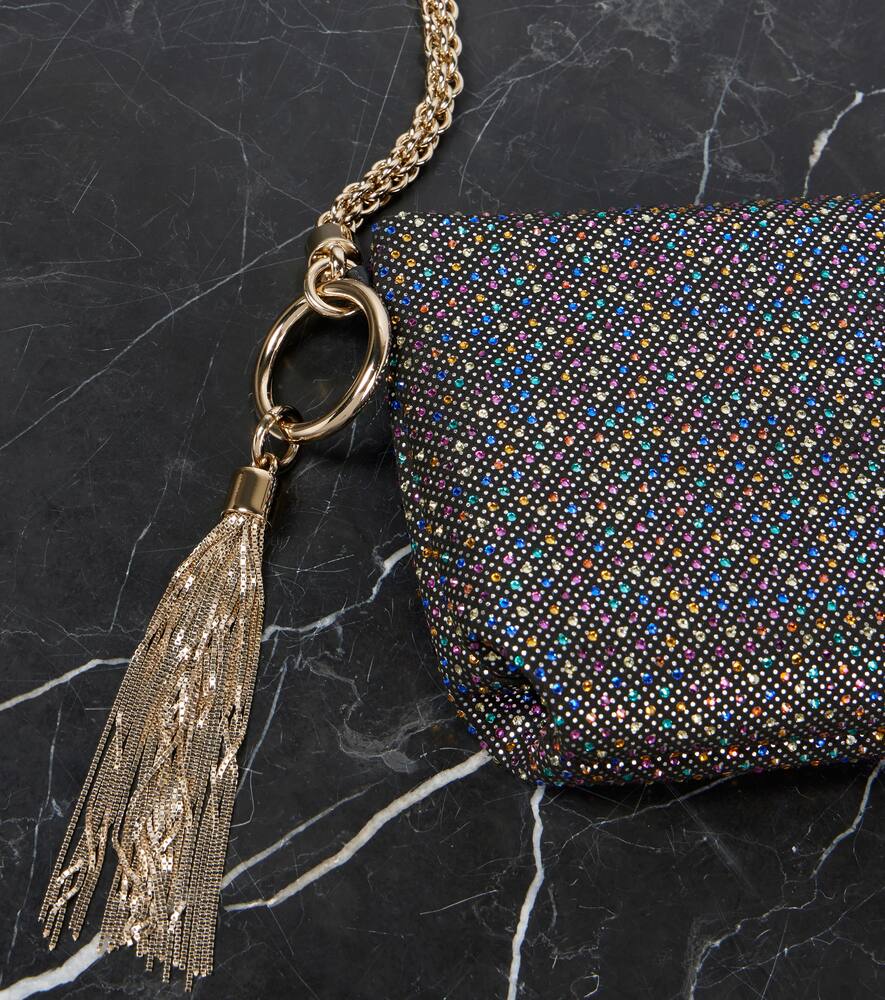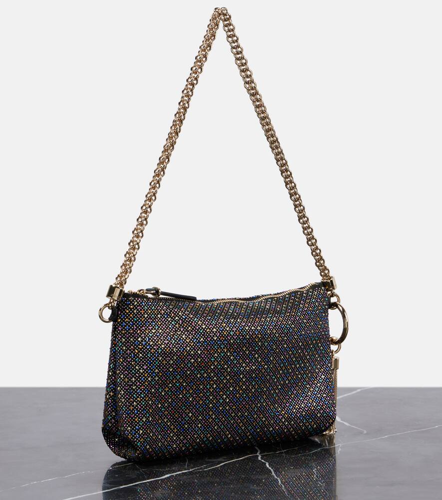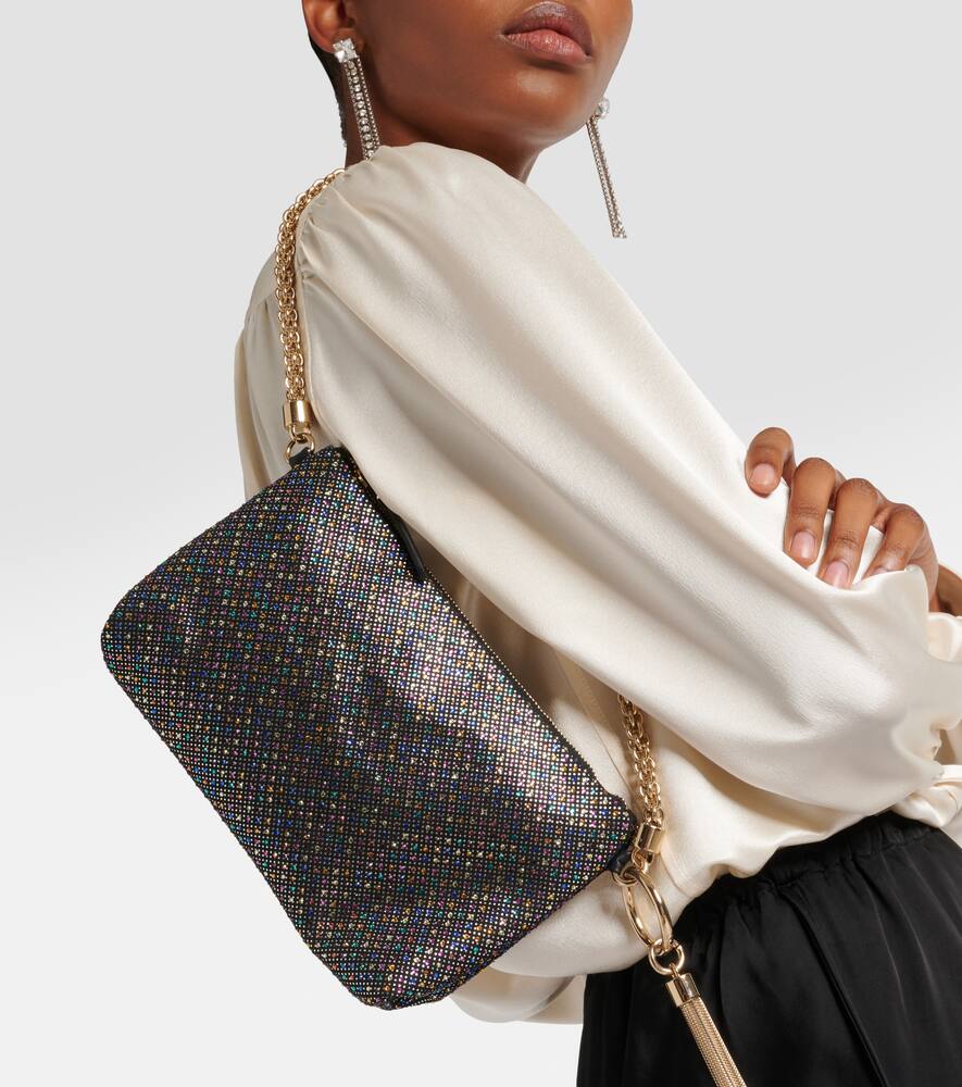 Material: fabric. Lining: fabric. Made in Italy. Designer color name: Black Mix. Closure: zipped top. Chain shoulder strap. Includes: box, dust bag. Shop the latest Jimmy Choo Shoulder Bags for women now.