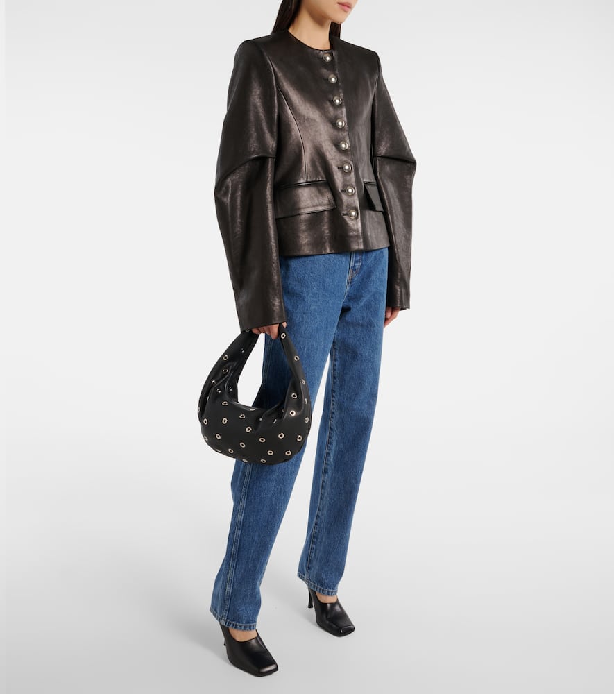 Material: calf leather. Lining: calf leather. Made in Italy. Designer color name: Black. Top handle. Closure: zipped top. Hardware color: silver. Shop the latest Khaite Shoulder Bags for women now.