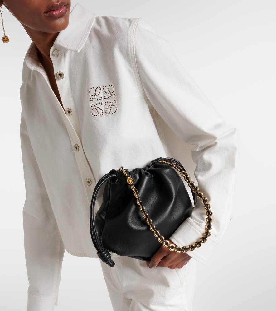 Material: lamb leather. Lining: suede. Made in Spain. Designer color name: Black. Closure: snap-clasp fastening. Detachable shoulder strap. Shop the latest Loewe Shoulder Bags for women now.