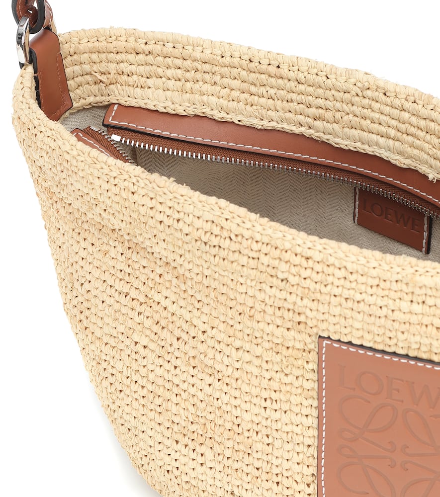 Material: raffia. Lining: fabric. Made in Spain. Designer color name: Natural/Tan. Trim: calf leather. Closure: zipped top. Comes with dust bag. Color of fastening: gold. Shop the latest Loewe Shoulder Bags for women now.