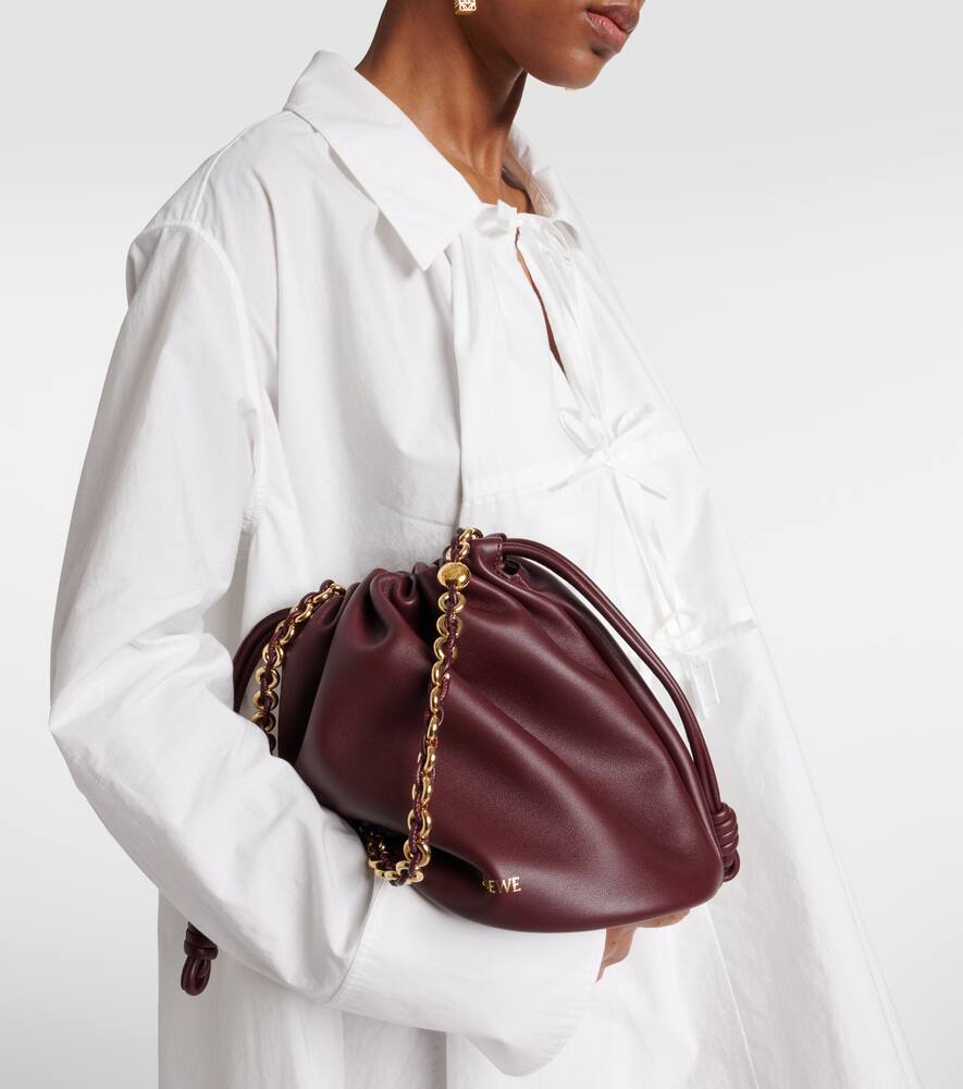 Material: lamb leather. Lining: suede. Made in Spain. Designer color name: Dark Burgundy. Closure: drawstring top, magnetic-tab fastening. Detachable top handle, Detachable shoulder strap. Includes: dust bag. Shop the latest Loewe Shoulder Bags for women now.