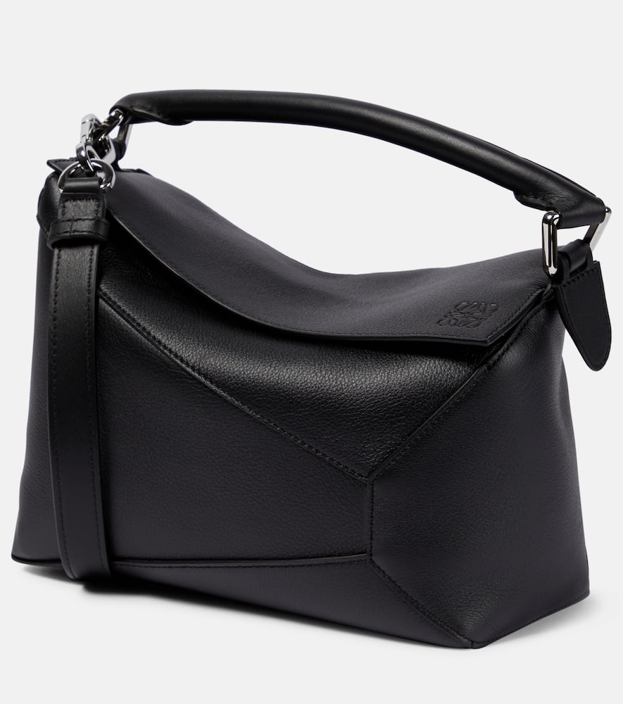Material: calf leather. Lining: fabric. Made in Spain. Designer color name: Black. Internal details: internal slot pockets. Top handle, Detachable, adjustable shoulder strap. Closure: zipped top. Zipped back pocket. Protective feet. Includes: dust bag. Shop the latest Loewe Shoulder Bags for women now.