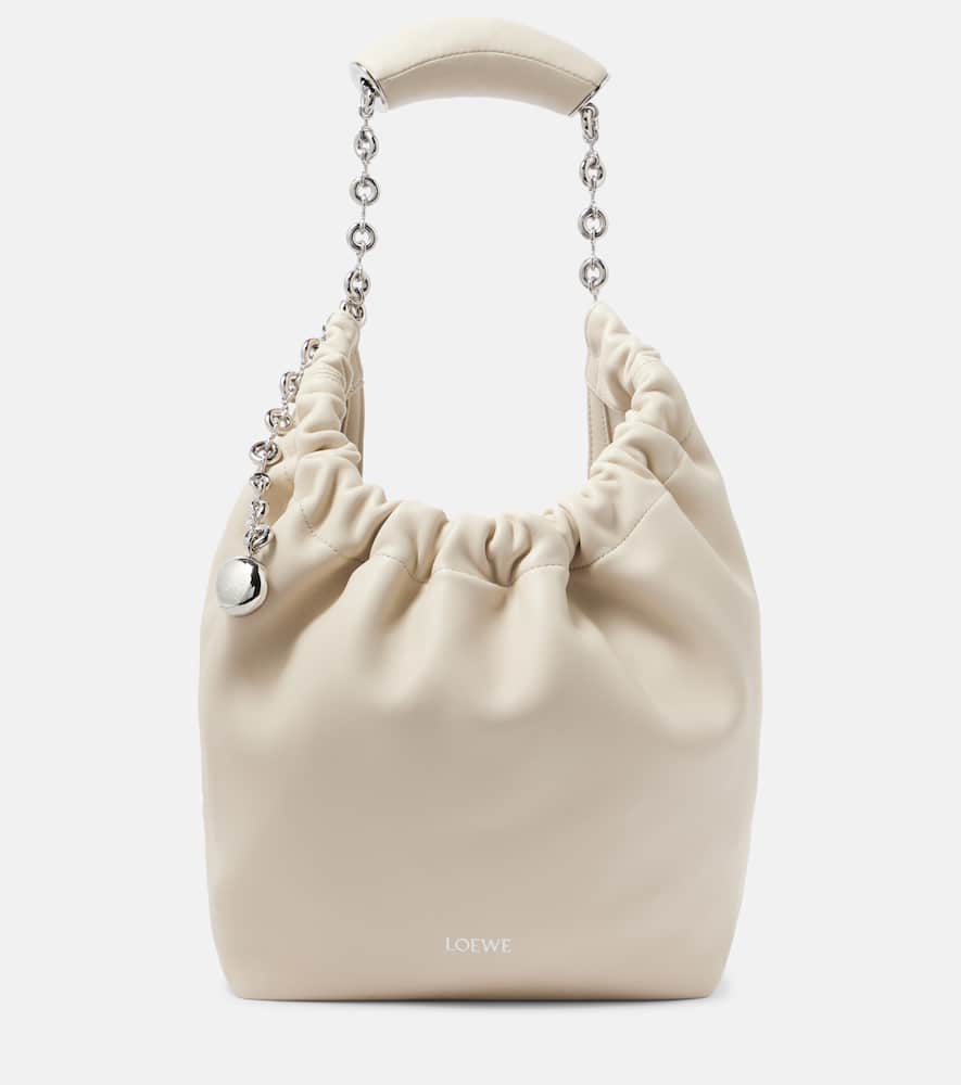 Material: lamb leather. Lining: suede. Made in Spain. Designer color name: Sea Salt. Adjustable chain and leather shoulder strap. Closure: magnetic fastening. Internal details: internal zipped pocket. Includes: dust bag. Hardware color: silver. Shop the latest Loewe Shoulder Bags for women now.