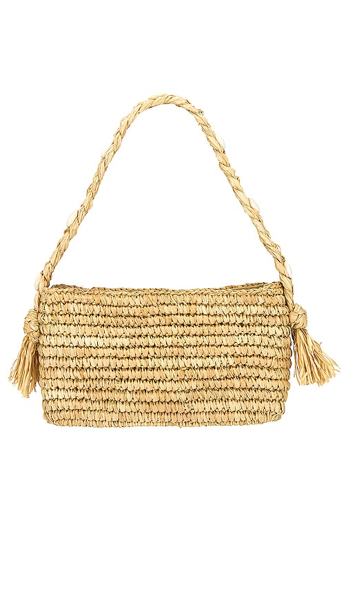 LSPACE Azalea Bag in Beige. LSPACE Azalea Bag in Beige. Raffia exterior with linen lining. Made in China. Magnetic button closure. One main compartment with interior slip pocket. Braided straw shoulder strap with seashell and knotted fringe accents. Measures approx 10.5 W x 6 H x 3 D Top handle with a 7 drop. LSPA-WY28. LSAZA22. California-based designer Monica Wise delivers a collection of stylish swimwear that brings a state of opulence to any poolside get-together. Pieces are fashion forward, offering modern designs in luxurious materials that are sophisticated, but also beach appropriate. Shop the latest in fashion from LSPACE