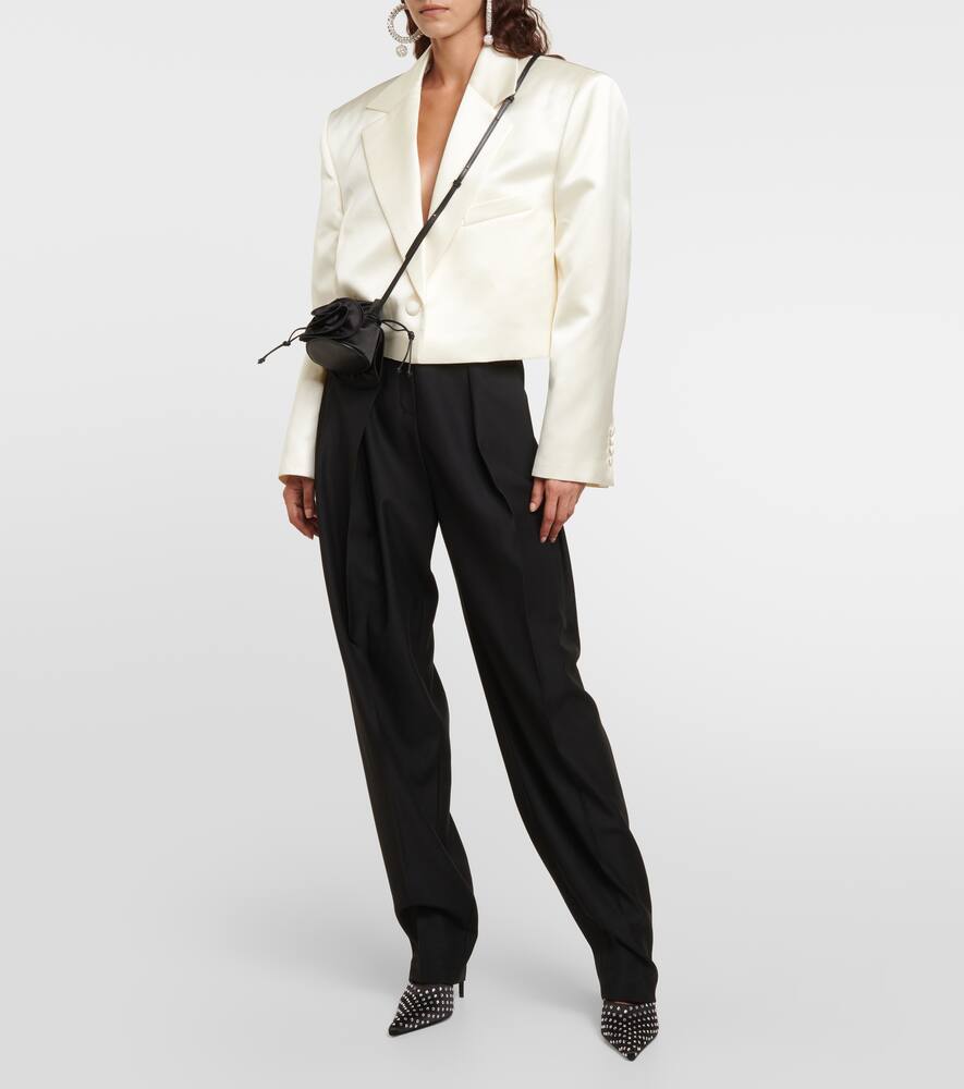 Material: fabric, leather. Lining: fabric. Made in Italy. Designer color name: Black. Trim: faux pearls. Closure: drawstring top. Detachable top handle, Detachable, adjustable shoulder strap. Comes with dust bag. Comes with a box. Shop the latest Magda Butrym Shoulder Bags for women now.