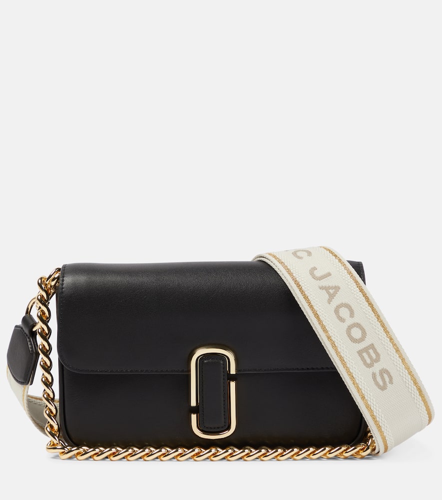 Material: leather. Lining: fabric. Made in the Philippines. Designer color name: Black. Internal details: internal zipped and slot pockets, fabric lining. Closure: magnetic-tab fastening. Detachable chain shoulder strap, Detachable, adjustable shoulder strap. Includes: dust bag. Shop the latest Marc Jacobs Shoulder Bags for women now.