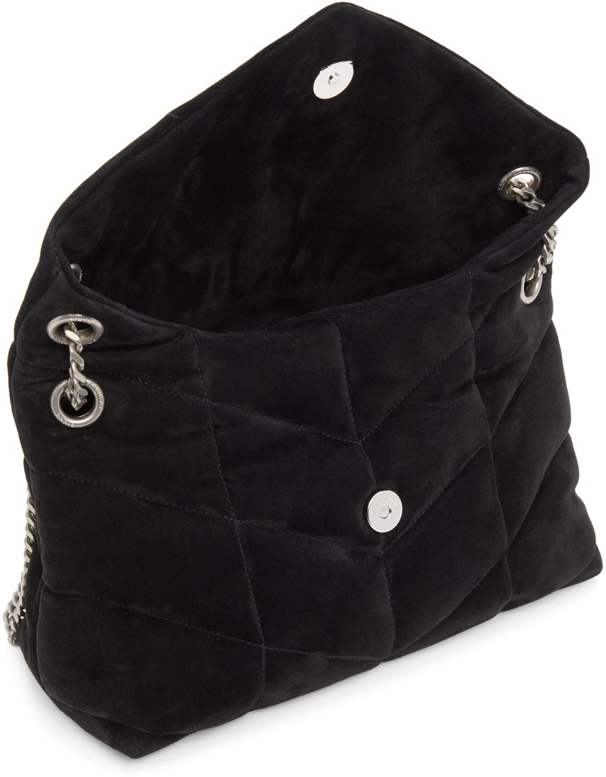 Saint Laurent Black Suede Small Loulou Puffer Bag