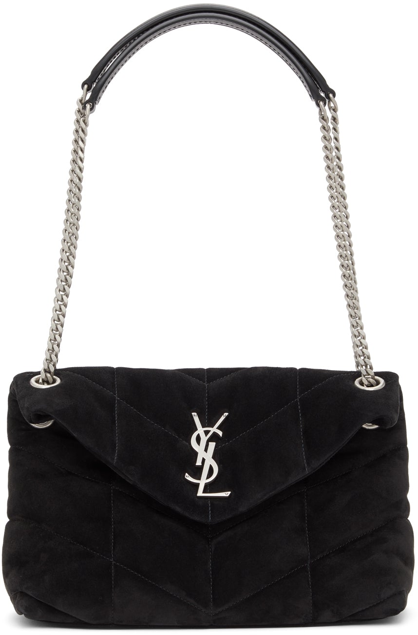 Saint Laurent Black Suede Small Loulou Puffer Bag - Saint Laurent Sue en daim noir petit sac de bouffante Loulou - 세인트 라이 렌트 블랙 스웨이드 소형 Loulou Puffer Bag.
