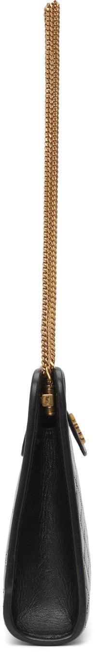 Quilted buffed lambskin shoulder bag in black. Sliding curb chain shoulder strap. Logo plaque at face. Hinged closure. Logo patch and patch pocket at interior. Tonal textile lining. Antiqued gold-tone hardware. Approx. 9 length x 6.5 height x 2 width. Supplier color: Black Lambskin. Brand: Saint Laurent