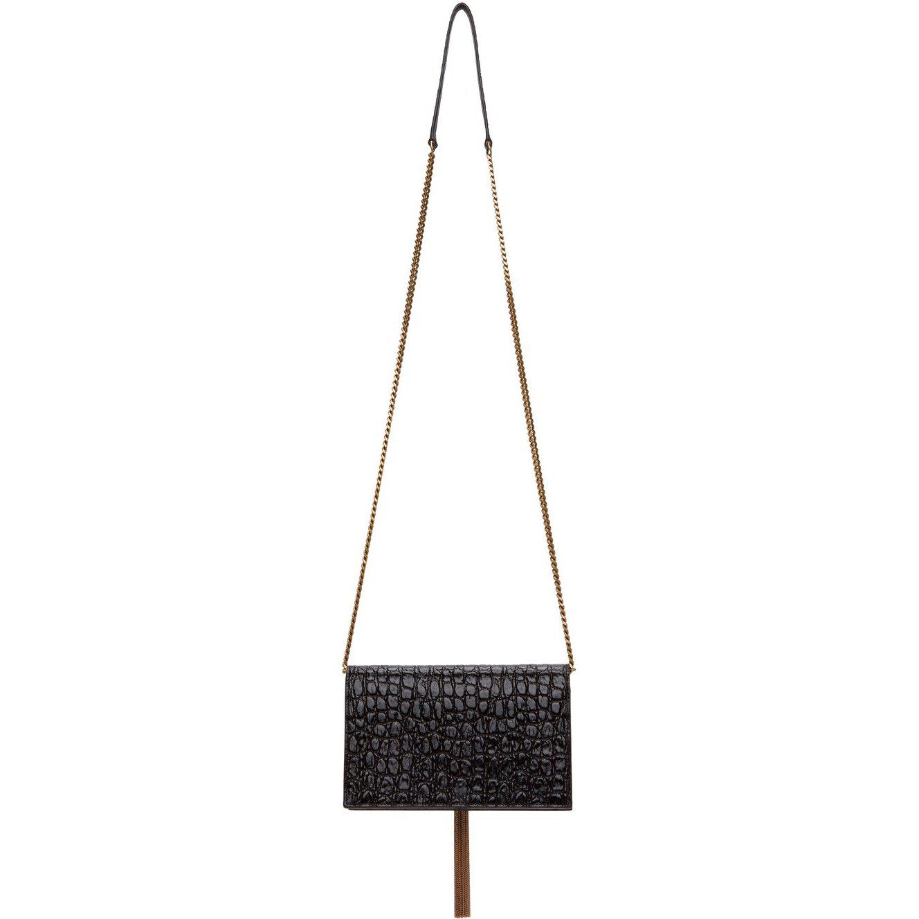 Saint Laurent Brown Croc Kate Tassel Chain Wallet Bag
