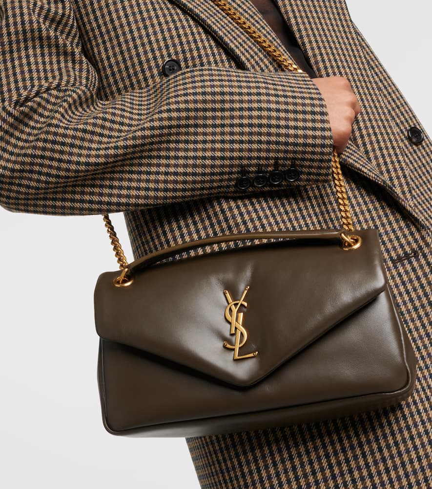 Material: leather. Lining: fabric. Made in Italy. Designer color name: Light musk . Adjustable chain and leather shoulder strap. Internal details: internal zipped pocket. Closure: magnetic-tab fastening. Shop the latest Saint Laurent Shoulder Bags for women now.