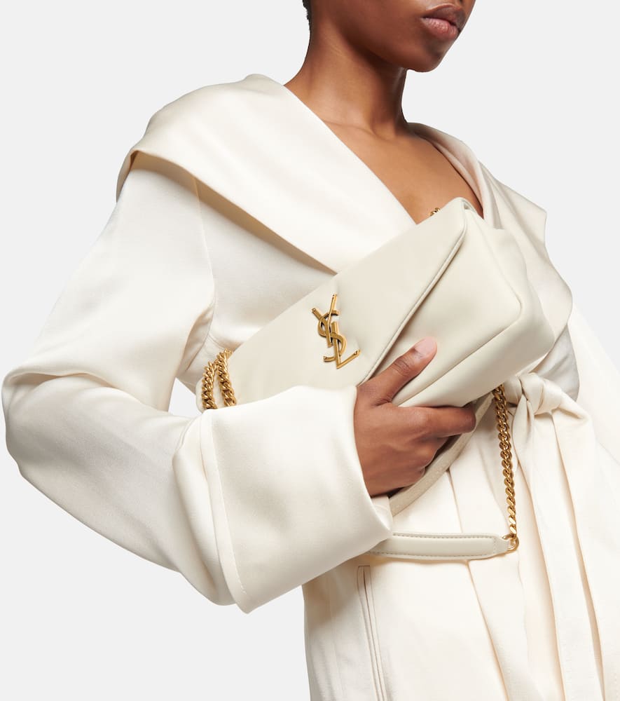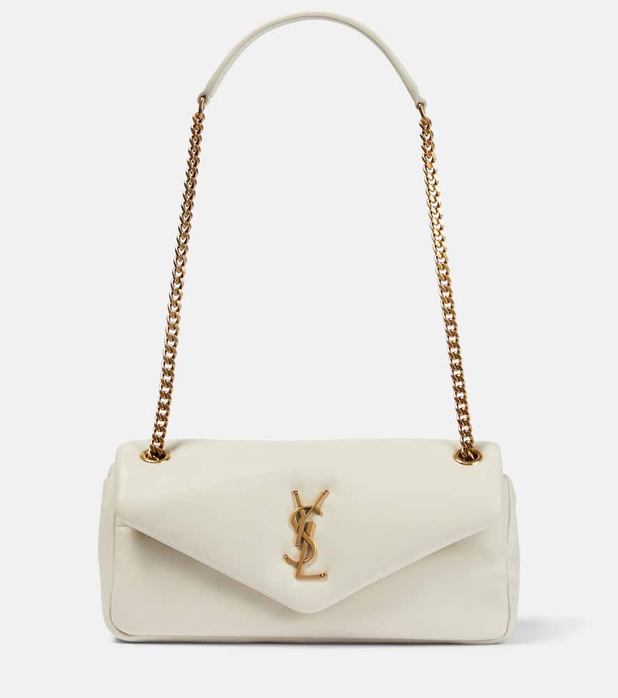 Chain and leather shoulder strap. Material: lamb leather. Designer color name: New Crema Soft. Internal details: leather lining, internal zipped pocket. Color of chain strap: gold. Closure: snap-buttoned fastening. Comes with dust bag. Made in Italy. Shop the latest Saint Laurent Shoulder Bags for women now.