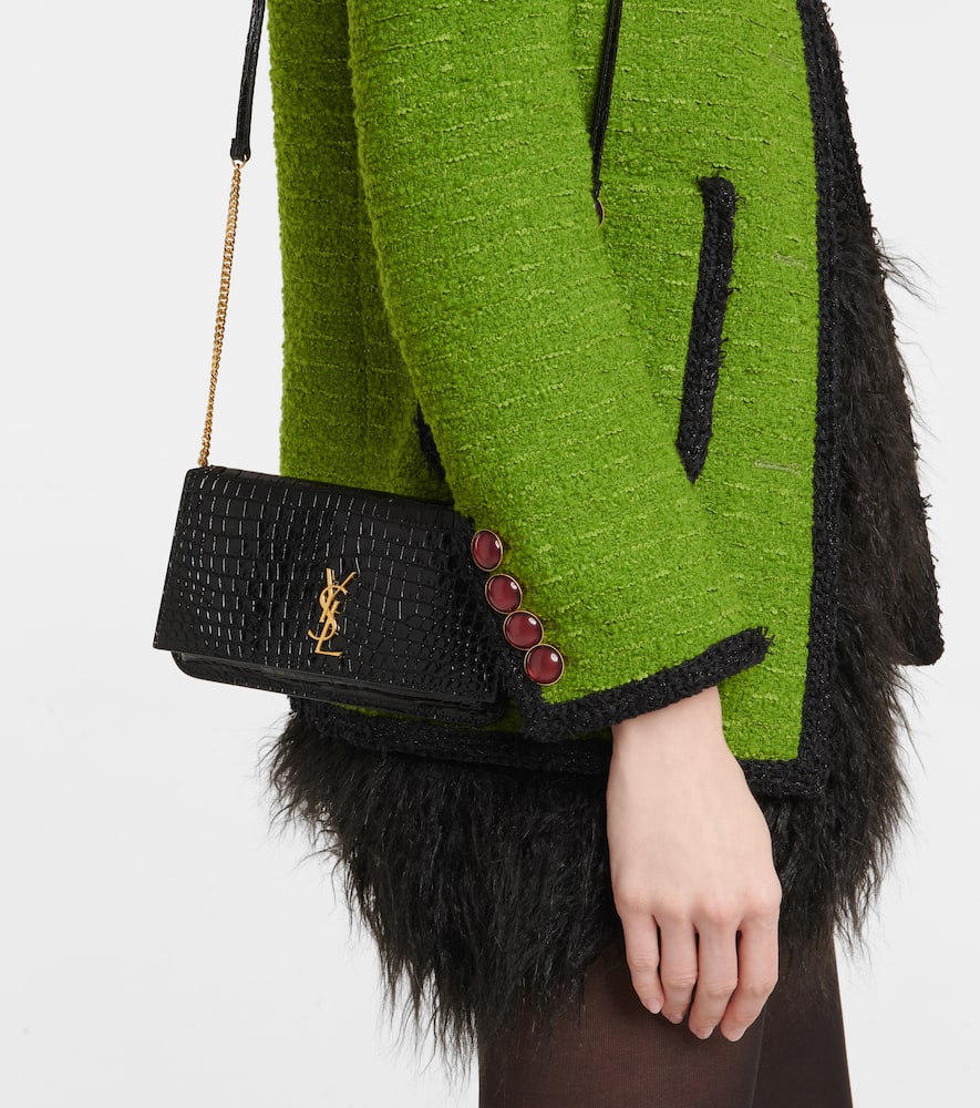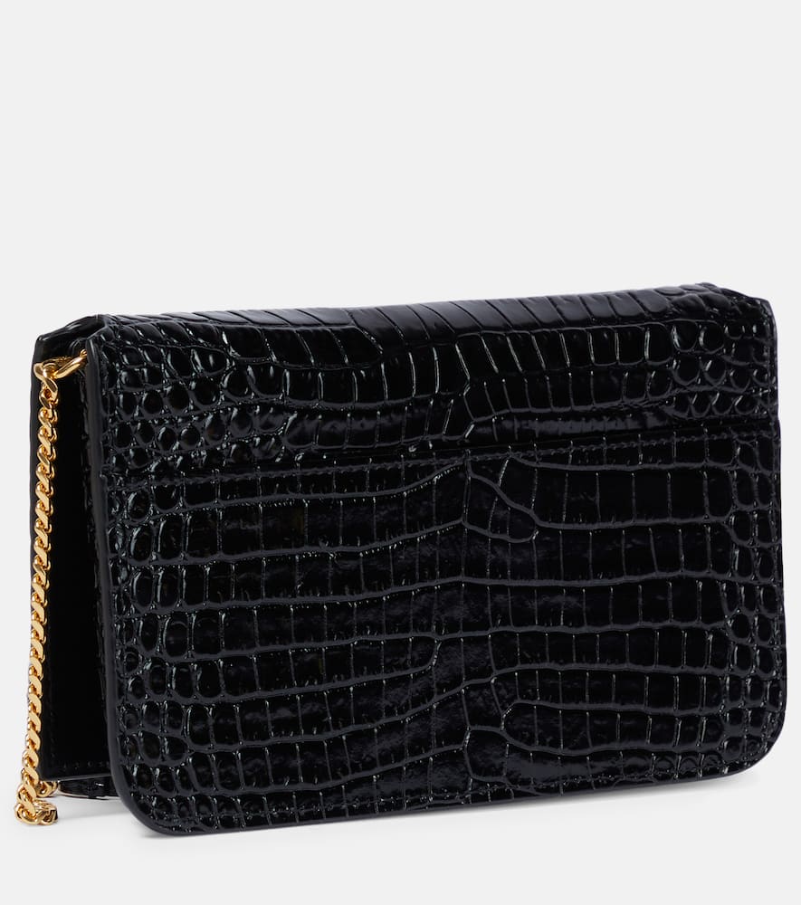 Material: calf leather. Lining: fabric. Made in Italy. Designer color name: Nero/Nero. Hardware color: gold. Closure: snap-buttoned fastening. Chain and leather shoulder strap. Back slot pocket. Includes: box. Shop the latest Saint Laurent Shoulder Bags for women now.