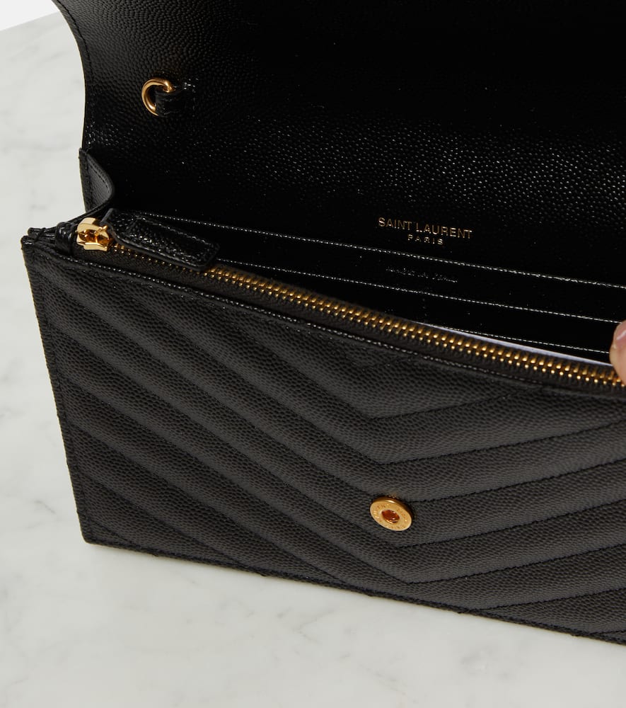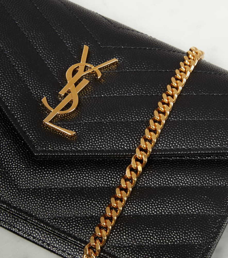 Color of fastening: gold. Internal details: internal zipped pocket, leather lining, Card slots. Designer color name: Nero. Made in Italy. Comes with dust bag. Detachable chain shoulder strap. Color of chain strap: gold. Closure: snap-buttoned fastening. Material: leather. Shop the latest Saint Laurent Shoulder Bags for women now.